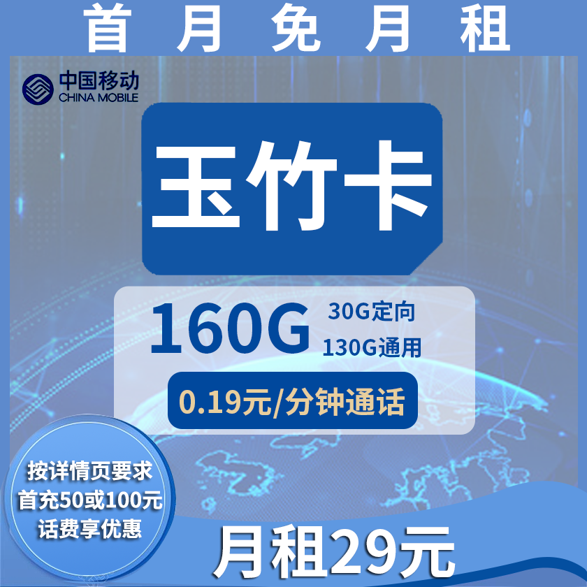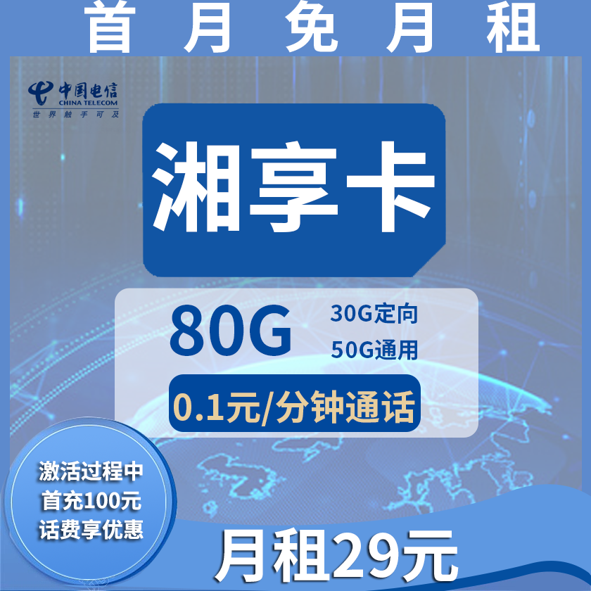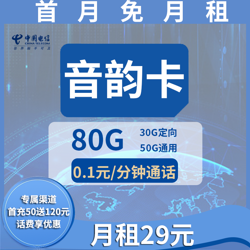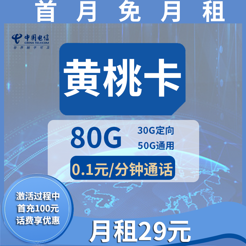 黄桃卡29元包50G通用+30G定向+通话0.1元/分钟